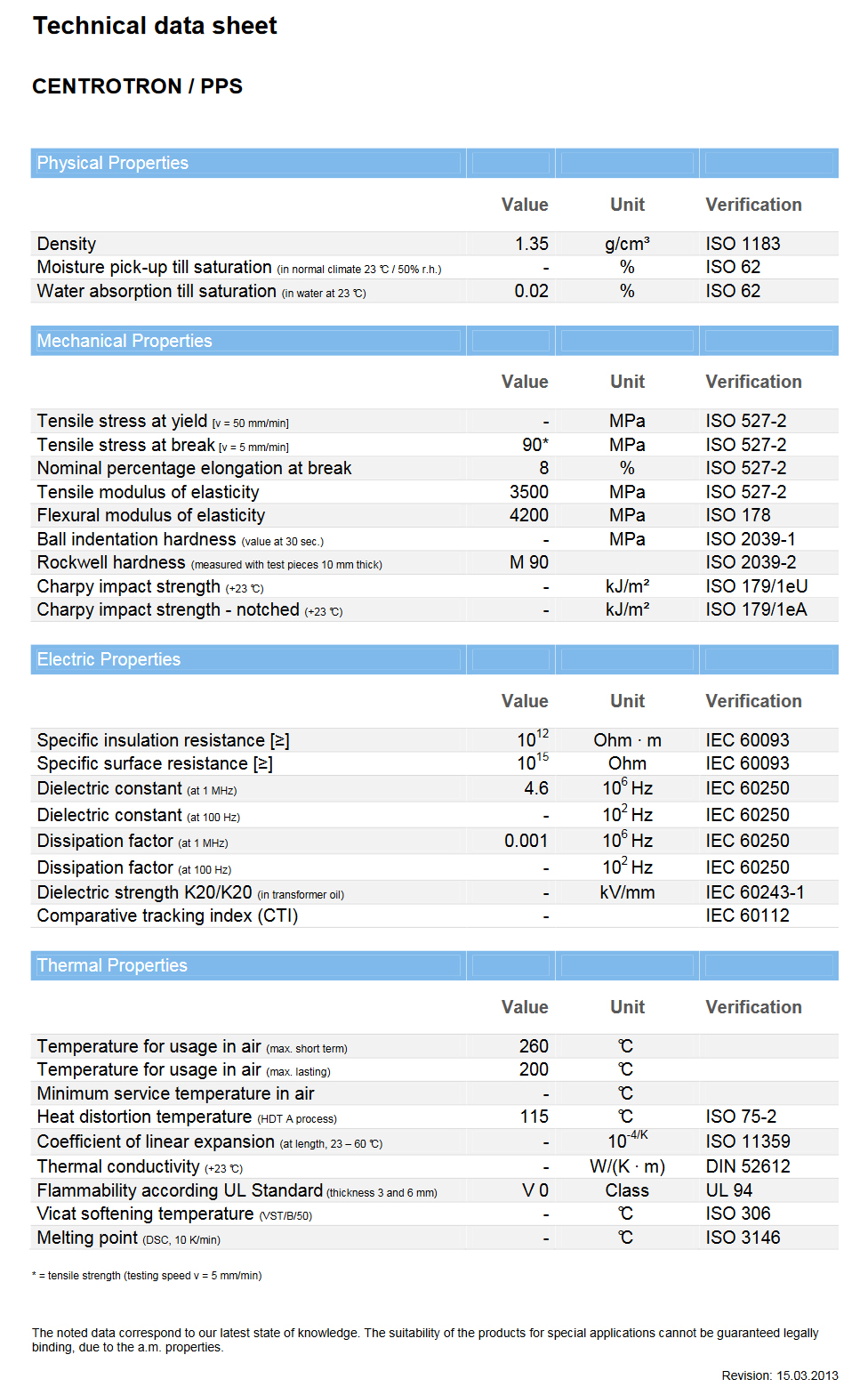 PPS技术参数表