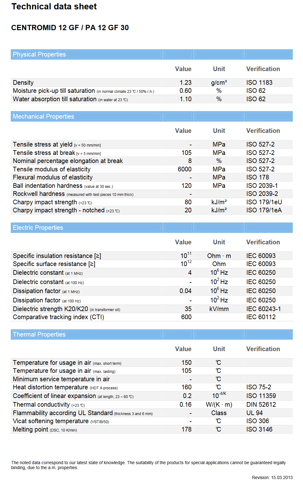 PA12GF30技术参数表
