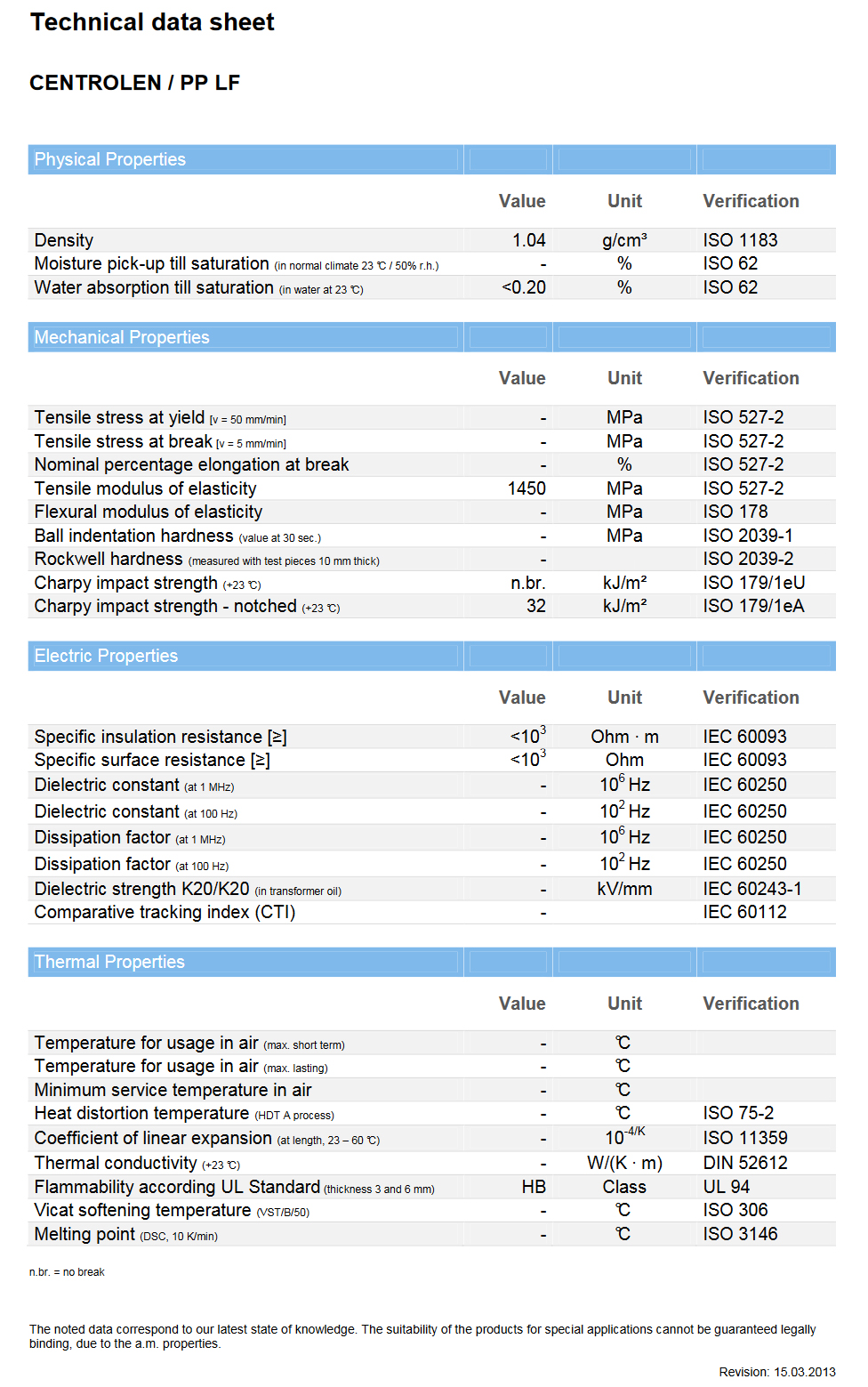 PP-EL技术参数表