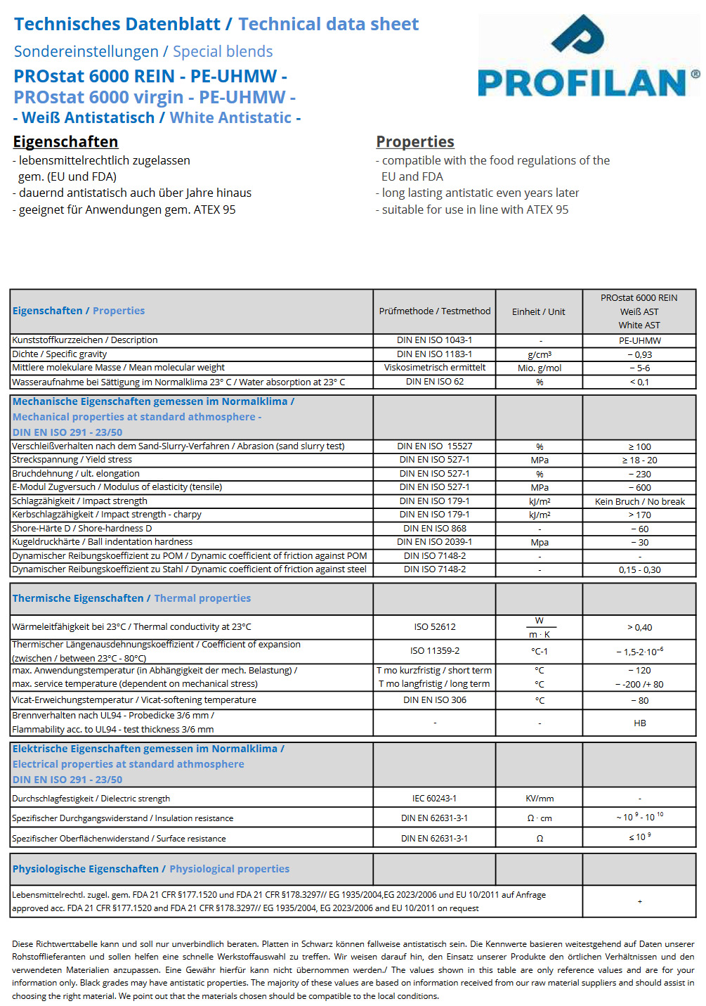 UHMW-PE-ESD技术参数表
